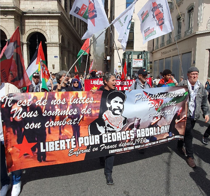 Lyon, France — Another great success – after the last mobilization in Lannemezan on April 6, which brought together over 2,000 people – for the national demonstration for the release of Georges Abdallah called by the Campagne Unitaire pour la Libération de Georges Abdallah, co-organized by the Ligue de la Jeunesse Révolutionnaire and the Collectif 69 Palestine!
