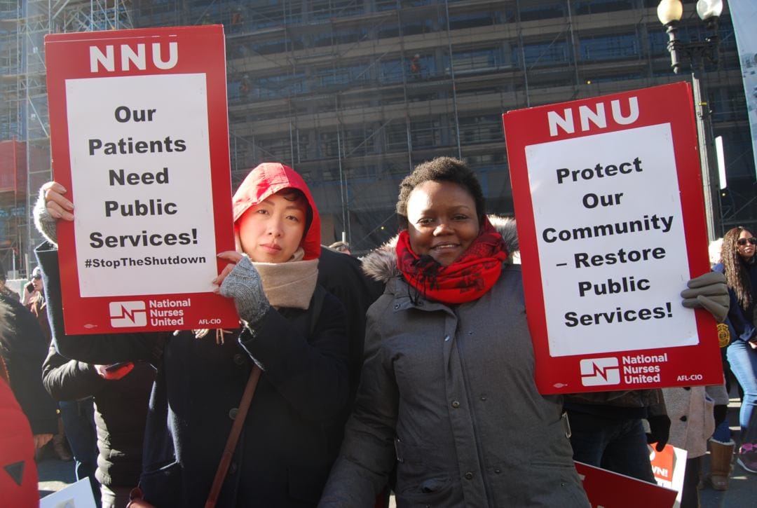 On January 10, in spite of cold and windy conditions, hundreds of union workers and their supporters gathered outside AFL-CIO headquarters in Washington, D.C., to protest the current federal government shutdown. A coalition of more than 30 labor unions sponsored the event.