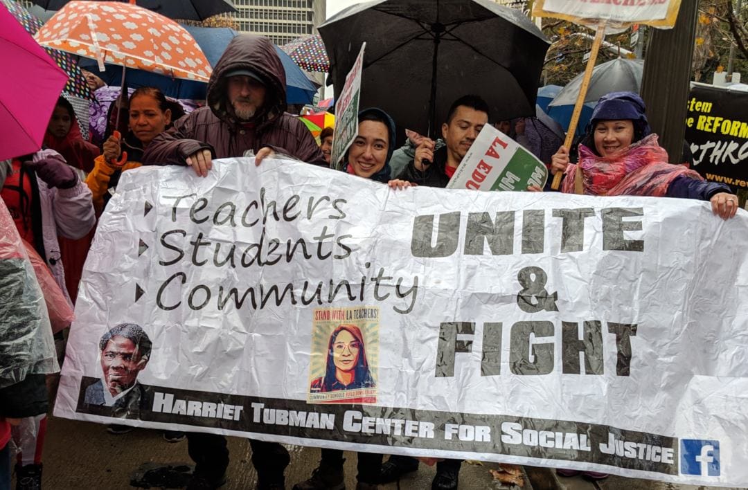 Thousands of union signs showed that these education workers are fighting, on behalf of their students, to turn back years of defunding and neglect by the national drive to privatize public schools.