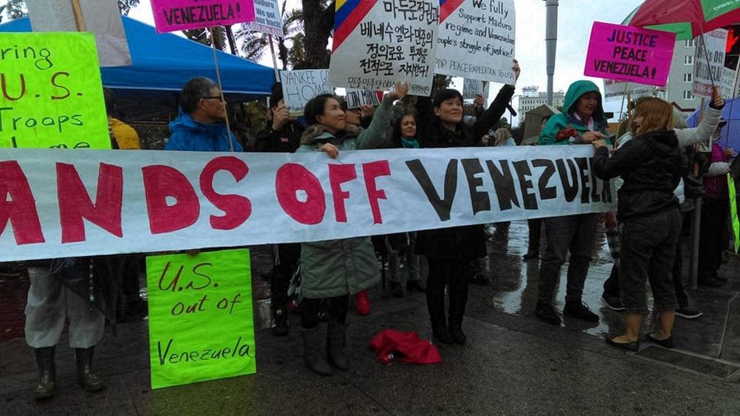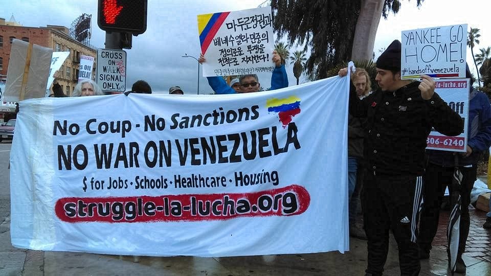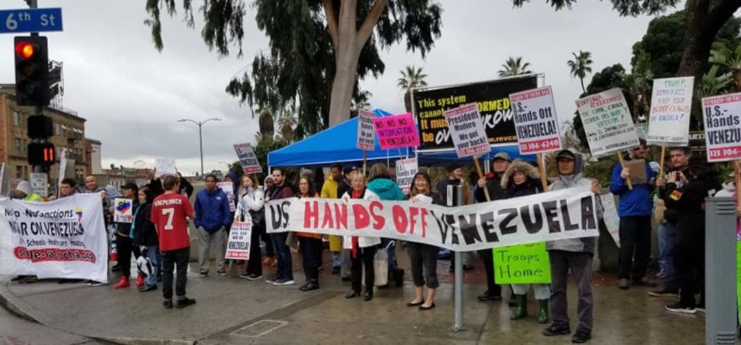 In spite of flash flood warnings and heavy rain, people in Los Angeles came out Feb. 2 to demand no U.S. war and intervention against the government and people of Bolivarian Venezuela.