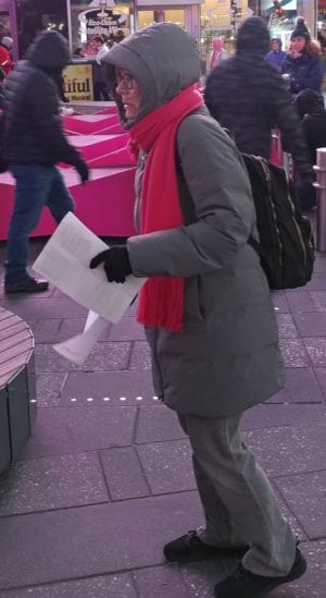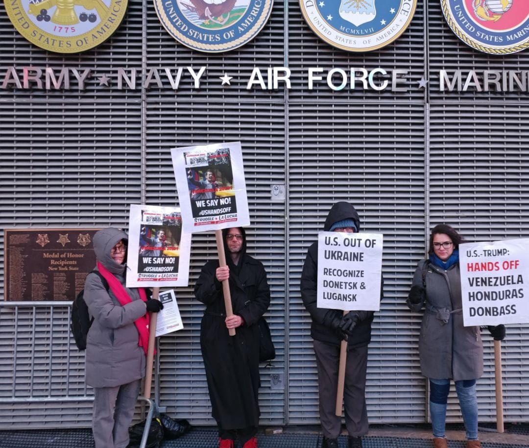 A squad of activists, including members of Struggle-La Lucha, went to New York’s Times Square at rush hour on Feb. 18 to hand out leaflets and hold an informational picket outside the U.S. military recruitment center. They distributed a flyer headlined “U.S. coups: Ukraine 2014 – Honduras 2009 – Venezuela 2019? We say no!” It provided information on the effects of U.S. supported coups on the people in these countries and the importance of taking to the streets on Feb. 23 for the global #HandsOffVenezuela day of action.