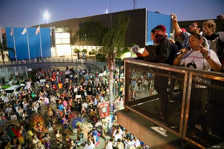 The march and rally were co-sponsored by an impressive list of organizations, including the American Friends Service Committee, Armadillos Búsqueda y Rescate, Border Angels, Bridge of Love Across the Border, the Democratic Women’s Club of San Diego County, Colectivo Zapatista, Danza Mexicayotl, the Democratic Socialists of America, Detainee Allies, Kalpulli Ketzalhuitzilin, the Leonard Peltier Defense Committee, Lights for Liberty and the National Brown Berets de Aztlan.