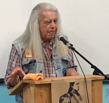 Two AIM SoCal leaders, Gray Wolf and Brenda Gutierrez, spoke eloquently about the history of AIM, the battles at Standing Rock and about Indigenous peoples’ struggles throughout the world. Each of them expressed strong solidarity with the Indigenous peoples who reside in the Amazon and face being forced out by the right-wing drive to exploit the resources of the forest.