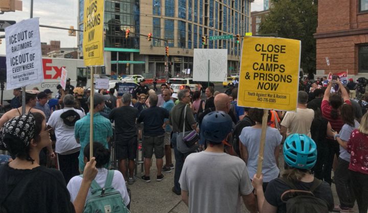 The protest and rally was organized by the Peoples Power Assembly, ICE Out of Baltimore, Youth Against War and Racism and the Prisoners Solidarity Committee. It was part of a series of actions to oppose the Republican Party retreat, including a climate change protest, a labor sing-along and an LGBTQ2S dance on the promenade.