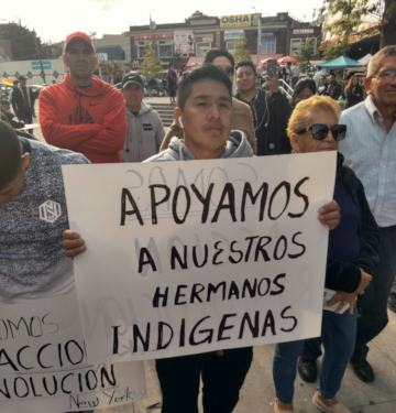 Among the signs in Spanish that demonstrators carried were the messages that “We support our Indigenous siblings” and “Moreno out.”
