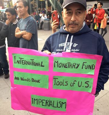 New York — Hundreds of people gathered in Corona Plaza in the Borough of Queens on Oct. 13 to demand that Ecuador’s president, Lenin Moreno, resign. Ecuadorian immigrants and their supporters hailed the mass uprising in the South American country. People stayed on the elevated platform of the No. 7 train to watch.