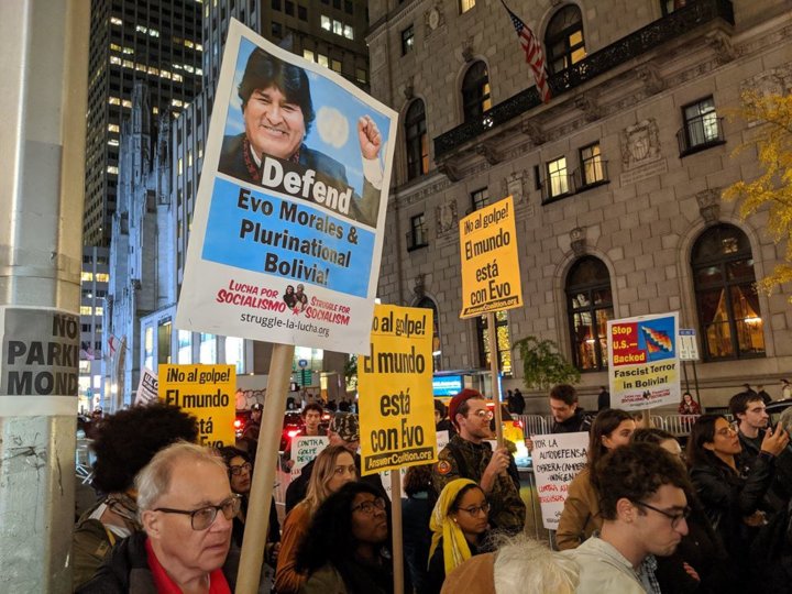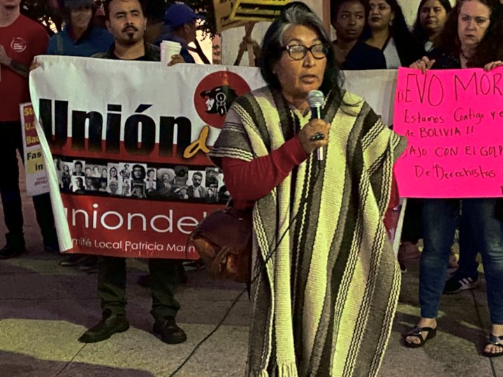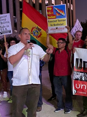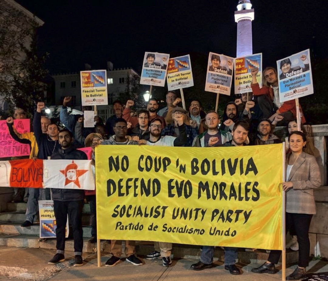 As news spread of the Nov. 10 right-wing coup against President Evo Morales, the Movement Towards Socialism (MAS) and Indigenous communities of Bolivia, anti-imperialists and progressive forces worldwide prepared to take action. In the U.S., Struggle-La Lucha newspaper and the Socialist Unity Party immediately issued a call for emergency actions to “Defend the Life of Evo Morales and Stop the U.S.-Fascist Coup” from Nov. 11-17.