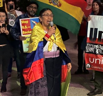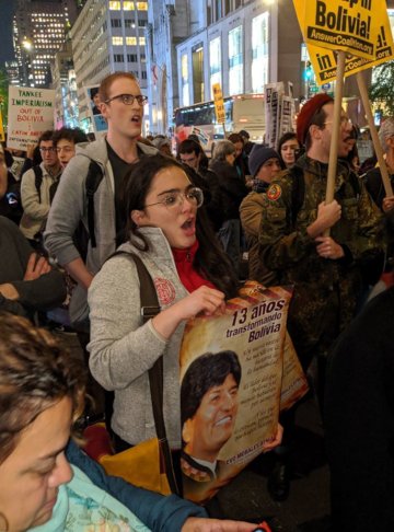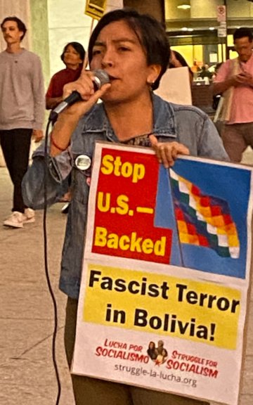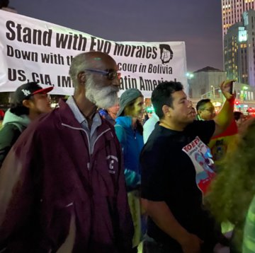 “We stand with Evo Morales, the Movement Toward Socialism and the Indigenous-led struggle in the Plurinational State of Bolivia, because they are fighting for all of the working class and the poor. It’s one struggle all over the world.”