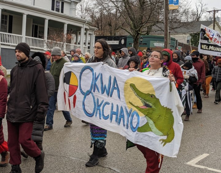 Together, Indigenous and Black, Latinx and Asian, Arab and white, they respectfully observed the opening ceremony, listened to speakers representing many Native Nations and then marched in solidarity through the streets of Plymouth.