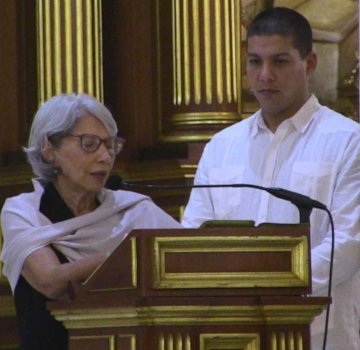 From the cathedral we proceeded to the cemetery where Don Rafael’s father is also buried. After a few words of farewell and exhortation to the unity of the patriotic forces by Rubén Berríos, president of the Puerto Rican Independence Party, whom Cancel Miranda had asked to make his farewell, Rafael, the youngest son of Cancel Miranda, spoke. He read a message from his father “Do not cry for me, I am not here anymore, I am in your hearts. And I will continue there. What I do ask is that you always keep the [Puerto Rican] flag raised, that you always walk with your head held high, that you do not be deceived, that you do not become zombies, [because] the media aim to control our minds, that you do not fight with each other [independence] comrades. Who is the enemy? The Yankee empire!”