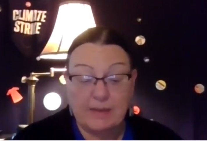 Mahtowin Munro of United American Indians of New England opened the webinar with a land acknowledgement, urging attendees to remember that we live on stolen Indigenous lands. Government officials are “exploiting the land, and they’re handing out lands and contracts as favors to all their capitalist corporate allies.”