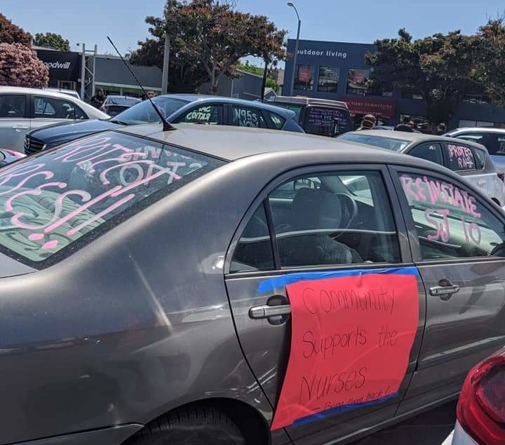 Add to that the solidarity of the progressive movement and activists who came out consistently for the nurses. A well-attended and loud-honking car caravan protest on April 21 was organized by the union, which invited the community of folks in solidarity with the nurses to come out and demand the nurses be reinstated and given the necessary protections to do their jobs and remain safe.