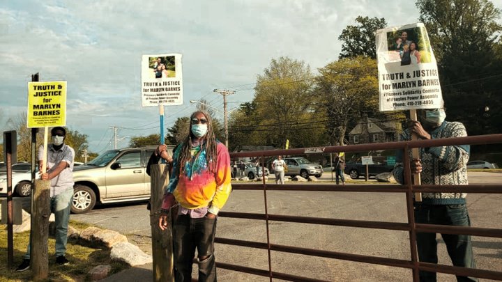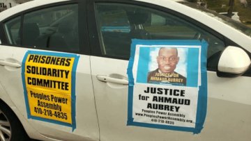 Cars were not only decorated with signs and banners declaring “Justice for Marlyn Barnes,” “Free Them All,” and demanding PPE and testing for prisoners, but also calling for “Justice for Ahmaud Arbery!”