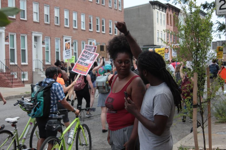 Then, a speech was given in solidarity with the Palestinian people, who continue to face killings and jailings at the hands of the fascist Israeli regime. That speaker called for the end of collusion with Israeli Defense Forces. The Baltimore City Police Department has been sending its officers to Israel to learn terroristic policing tactics, which are then used on the people of Baltimore.