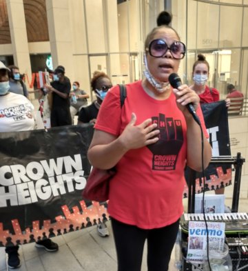Tiffany King of the Crown Heights Tenant Union told listeners of her family’s righteous struggle against their greedy landlord. Ms. King is determined to persevere.