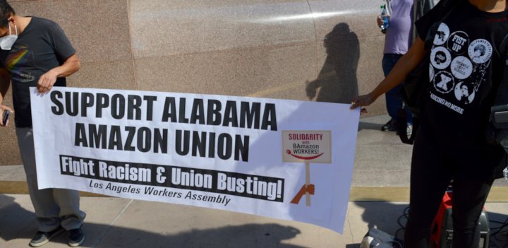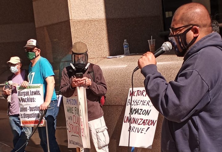 Union activists and community organizations mobilized nationally in late February in solidarity with the 5,800 Amazon warehouse workers fighting to unionize in Bessemer, Ala. Their campaign fighting for fair wages and benefits, against intrusive surveillance and unsafe working conditions during COVID, continues rising. The workers in Bessemer have until March 29 to vote for Retail, Wholesale and Department Store Union (RWDSU) representation.