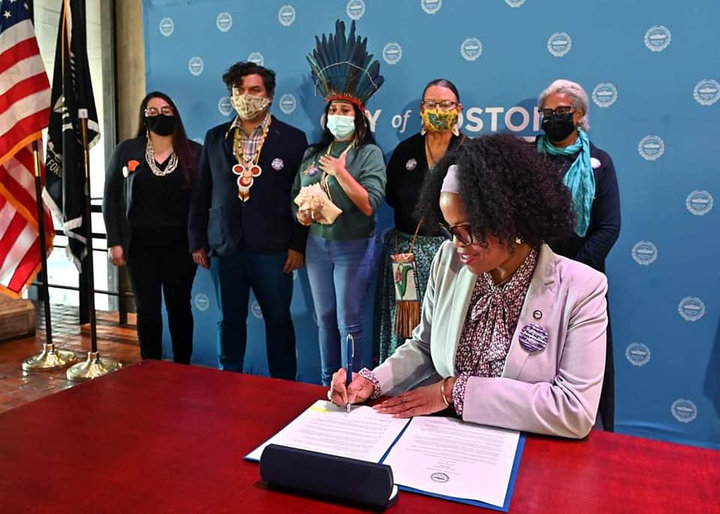 Oct. 6 — The Acting Mayor of Boston, Kim Janey, has today signed an Executive Order declaring that the second Monday in October will be Indigenous Peoples Day in the City of Boston, replacing Columbus Day and setting out a roadmap for future administrations to improve relations with Indigenous tribes and organizations.
