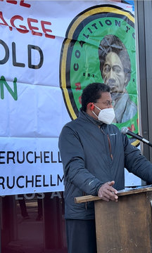 Participants in Saturday’s rally included the Party for Socialism and Liberation, the Socialist Unity Party and the Harriet Tubman Center for Social Justice. Former Black Panther and organizer of the monthly Black Panther Party Breakfasts, Harold Welton, spoke at the event. He has been the main organizer in Los Angeles for the freedom of Ruchell Magee.