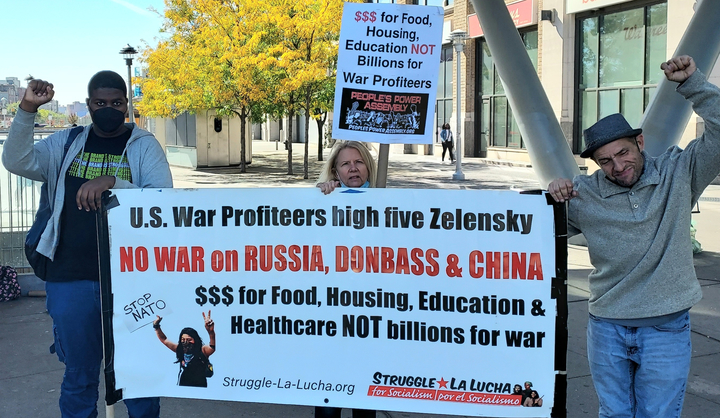 The protest was notable not only for being held in the working class, primarily Black and Latinx South Bronx neighborhood, but for being the first street action by a coalition of antiwar groups in New York City since the latest phase of the military conflict in Ukraine began. Up until today, only the Socialist Unity Party had held street actions in the city calling for “No war on Donbass, Russia and China, U.S. out of Ukraine.”