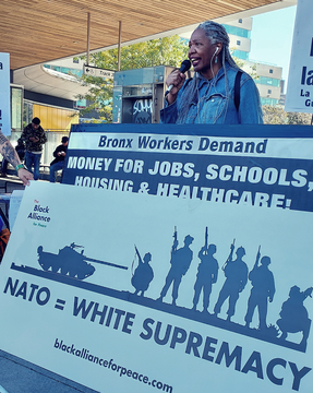 At an opening rally in Fordham Plaza, community organizers, speaking in both Spanish and English, decried the $70 billion spent on the U.S. proxy war in Ukraine while residents of the Bronx – the city’s poorest borough – struggle with evictions, hunger, decrepit schools and racist police violence.