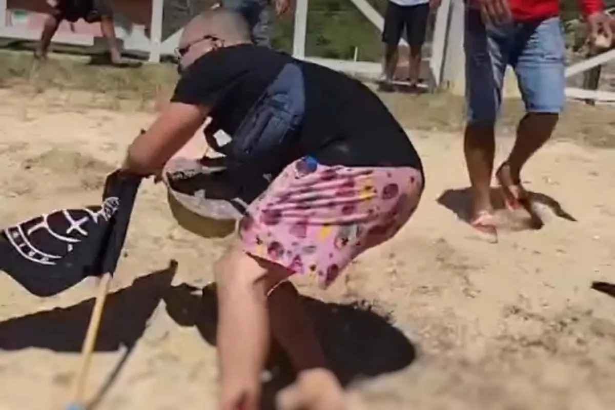 Captura de pantalla de un vídeo que muestra los momentos posteriores a que el activista medioambiental Ángel Luis Torres Rosado fuera tiroteado por fuerzas de seguridad privadas mientras protestaba contra una construcción ilegal en Aguadilla, Puerto Rico, el domingo 29 de enero de 2022.
