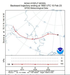 The USAF either shot down the 12Z weather balloon from Kotzebue or (bear with me here), they shot down a little tiny spaceship from the Planet Smallrocksia. I’m seriously leaning toward our weather balloon. And it’s pretty well supported with the balloon optimization Hysplit.