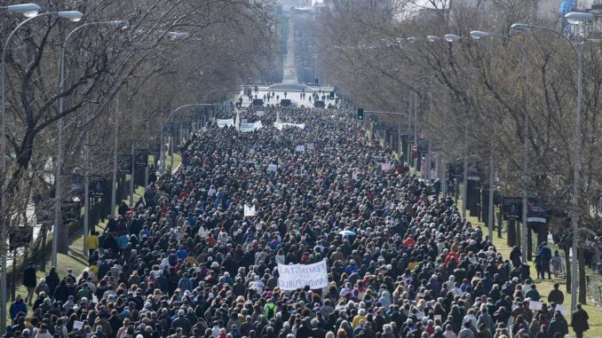 A group of pensioners chanted, “Cutting back on health care is a criminal act,” during the demonstration in Madrid in defense of public health care. These six words sum up the feelings of hundreds of thousands of people – a quarter of a million, according to the Government Delegation, and more than a million, according to the organizing organizations, who have verified the occupation of 350,000 square meters – who supported the demonstration.