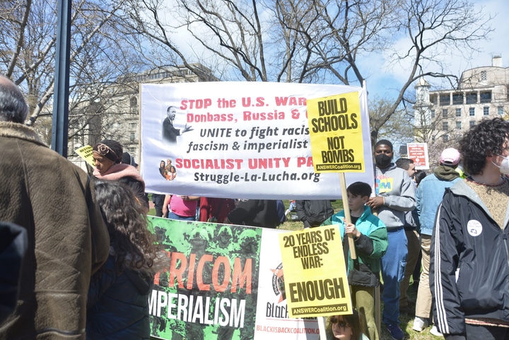 Over 2,500 people came to the White House to tell President Biden and Congress to stop the war with Russia. They gathered in Lafayette Park, where three years ago Trump ordered a tear gas and pepper spray attack on demonstrators demanding Black Lives Matter!