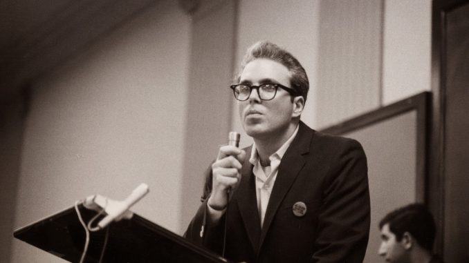 Fred Goldstein at a teach-in on Palestine at Columbia University, 1968.