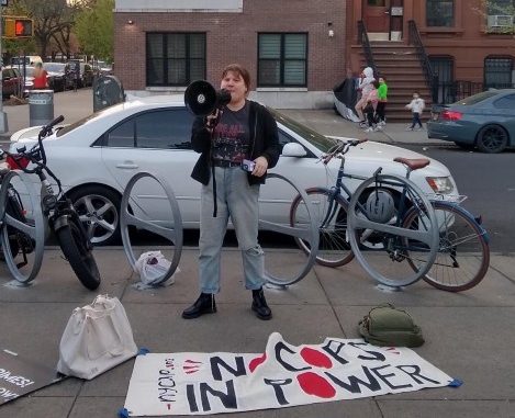 NYCAP member Briony Smith kicked off the speeches and fired the crowd up, stating, “We are furious that yet again, a man is dead, in another senseless, brutal tragedy,” and ended chanting, “No justice, no peace!” Next, Michela Martinazzi spoke about specific police officers from the 79th Precinct who had several complaints filed against them. Yet, taxes are contributing to their six-figure salaries.
