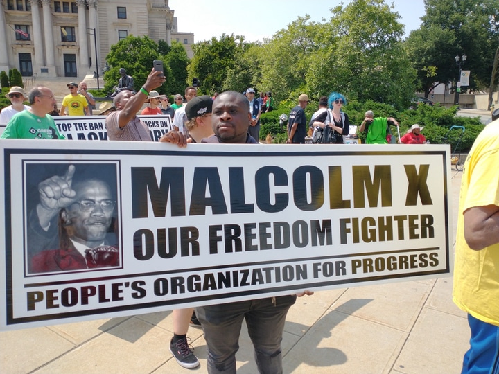 One of the signs read, “Stop the Ban & Attacks on Black History.”