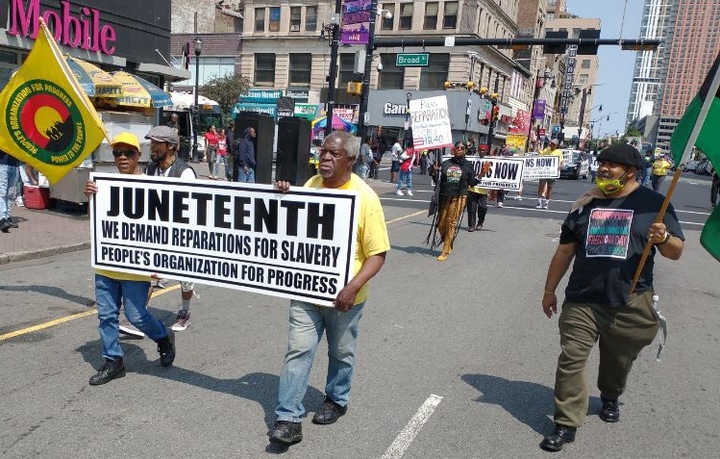 Over a hundred people rallied on Juneteenth in Newark, New Jersey, to demand reparations. The June 19 march and rally was organized by the People’s Organization for Progress.