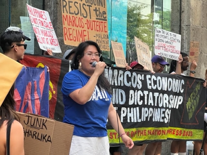 More than a hundred Filipinos and their allies rallied outside the Philippines consulate in New York City on July 23. They were protesting Philippines President Ferdinand Bongbong Marcos Jr.