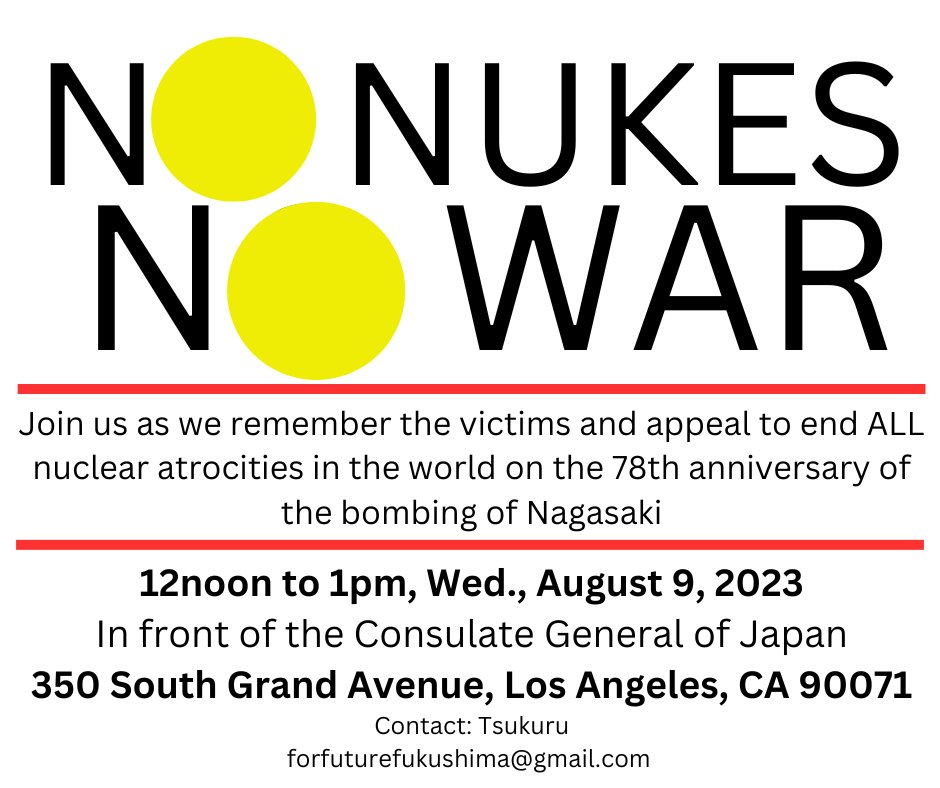 Join us as we remember the victims and appeal to end ALL nuclear atrocities in the world on the 78th anniversary of the bombing of Nagasaki.