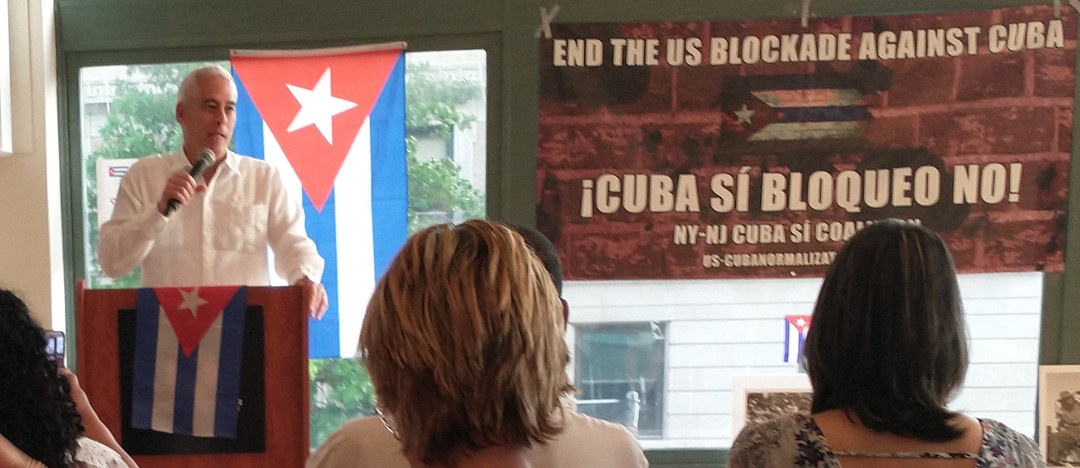 Ike Nahem of the New York / New Jersey Cuba Sí Coalition welcomed the large delegation from Cuba’s mission to the United Nations.