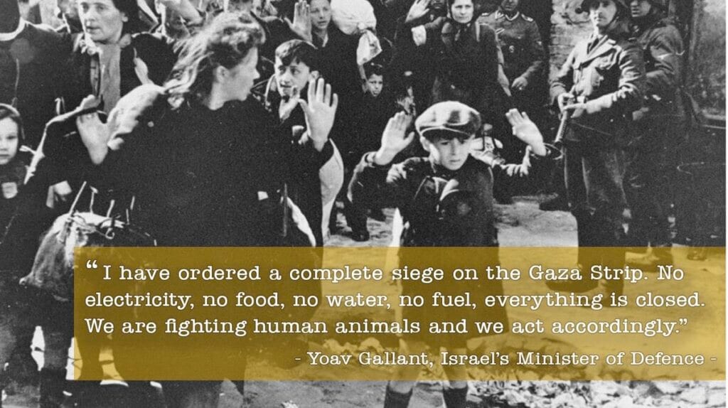A deluge of racism against the Palestinian people goes hand-in-hand with the missiles fired by Israel in revenge for the Al-Aqsa Flood uprising. Israeli defense minister Yoav Gallant called Palestinians “human animals.”