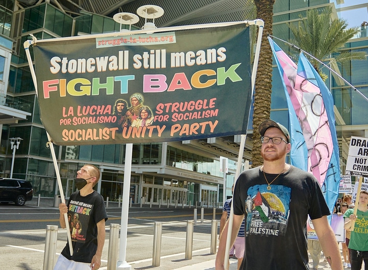 It was the first national mobilization against the current wave of anti-trans hate to take place in one of the states at the epicenter of the attack on trans lives – Florida, where Republican governor and presidential candidate Ron DeSantis has signed numerous laws and administrative measures aimed a driving trans people from public life and depriving them of health care, especially targeting young people.