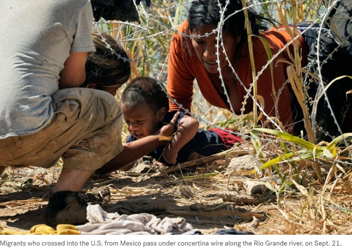 Crossing the U.S. border, migrants face deadly obstacles, including barbed wire fences and pontoons designed to injure and drown any who might try to swim across the Rio Grande River.