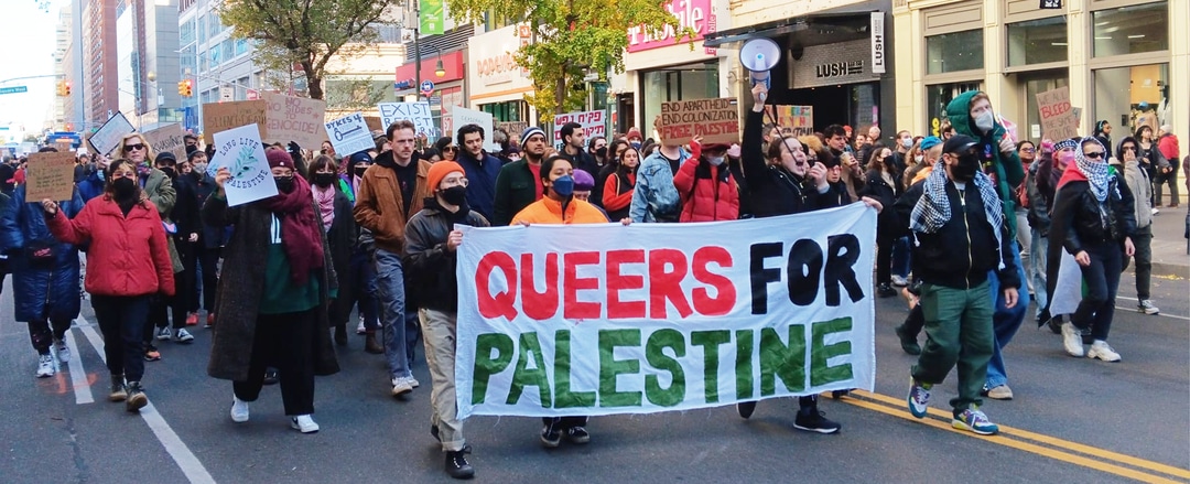 Thousands of people joined a Queers for Palestine march in New York City on Nov. 12. The crowd was young, militant, and angry about the deluge of Israeli pinkwashing aimed at the LGBTQ+ community in the U.S.
