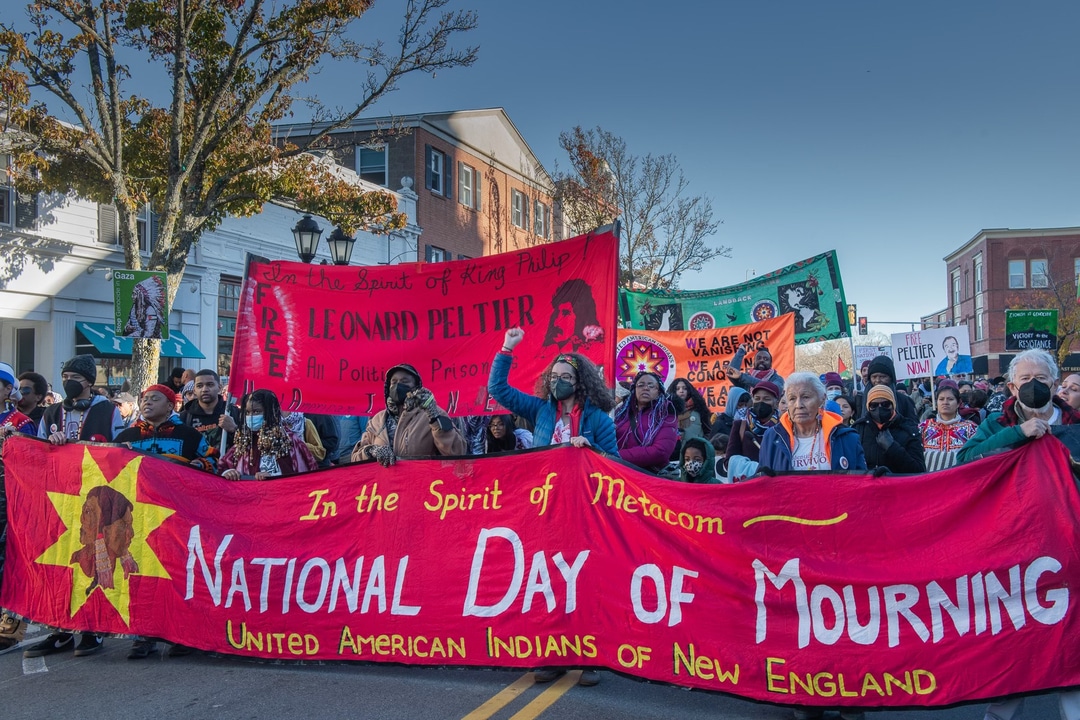 Talk by Palestinian activist Salma Abu Ayyash at the National Day of Mourning in Plymouth, Massachusetts, on Nov. 21.