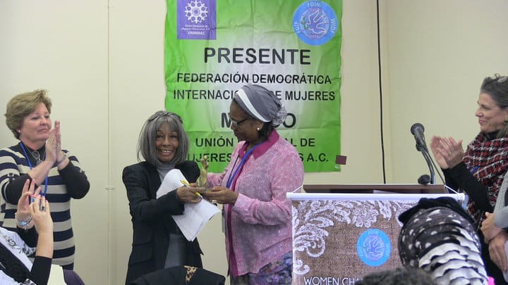 Vinie Burrows honrada por sus contribuciones por la Federación Democrática Internacional de Mujeres.