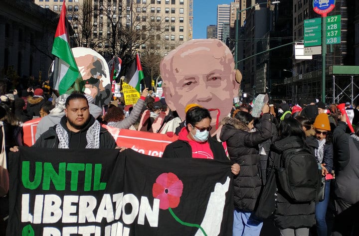 Thousands of people marched in Manhattan on Feb. 4 to demand a ceasefire and an end to the genocide in Gaza. At least 30,000 Palestinians, including 10,000 children, have been murdered there.