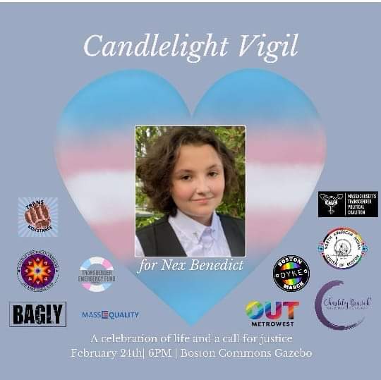 BOSTON VIGIL FOR NEX BENEDICT Saturday 2/24 at 6 pm Boston Common Bandstand (Gazebo) Come out, come out!