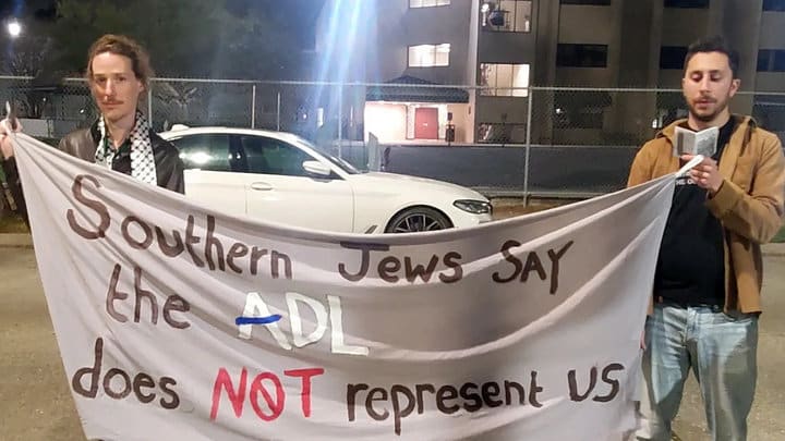 The ADL promotes a dangerous definition of anti-Semitism, which includes anti-Zionism. The ADL is complicit with genocide in Gaza. We were there as southern Jews to say the Anti-Defamation League does not represent us. Not in our name!