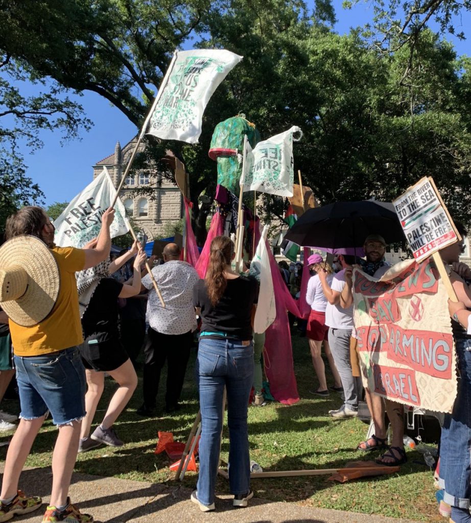 UPDATE: In the early hours of the morning on May 1, state, city, and campus police violently attacked the encampment. Students held firm in their resistance, even as they were rounded up and forced onto the St. Charles Avenue median. Fourteen activists were arrested.