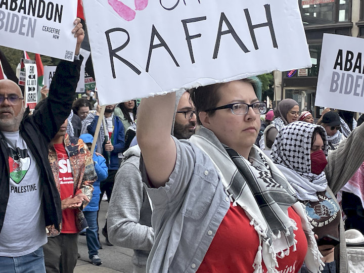 Hundreds gathered in Grand Circus Park on May 27 to march through downtown Detroit, protesting the recent U.S.-armed Zionist attack that set refugee tents ablaze in Rafah, adding more bodies to the tens of thousands martyred in less than eight months. CNN confirmed that the munitions used in the deadly strike on Rafah were U.S.-made, provided by Genocide Joe Biden.