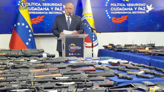 The Venezuelan interior minister said the discovery of the firearms unraveled a “terrorist plot” that included an effort to kill the president alongside high-ranking figures such as Vice President Delcy Rodríguez and Cabello himself. He added that the conspirators aimed to attack public infrastructure, including water supplies, electricity, and transportation.