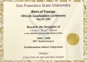 I entered SFSC in the Fall of 1967. Two months later, l was facing expulsion and prison time for defending the rights of Black students to have self-determination and a voice on campus. This was the precursor to Nov. 6, “On Strike Shut It Down”! It was at SFSC that l learned the true meaning of “dare to struggle, dare to win.” How to organize and build coalitions. The importance of political education. How to write a flyer, press release, and conduct a press conference — the importance of studying and applying what l learned into actual practice.