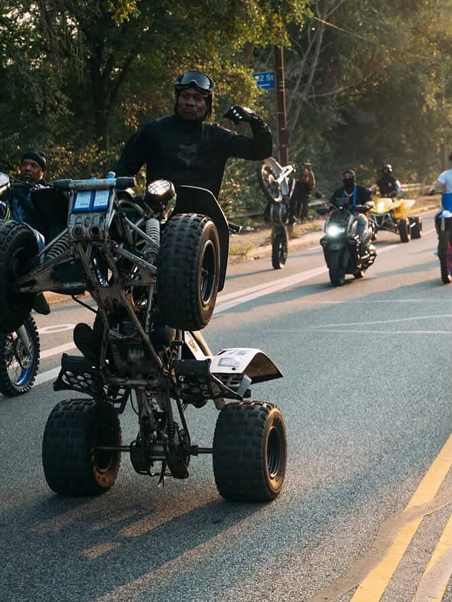 The 12 O’Clock Boys, also known as The Pack, is a community formed around the love of dirt bikes, four-wheeled ATVs, three-wheeled Slingshots, other all-terrain vehicles, and tricked-out cars. Every Sunday, The Pack has weekly rideouts through Baltimore City or others across the East Coast. (They are even sometimes seen out in Ohio and New Orleans.)