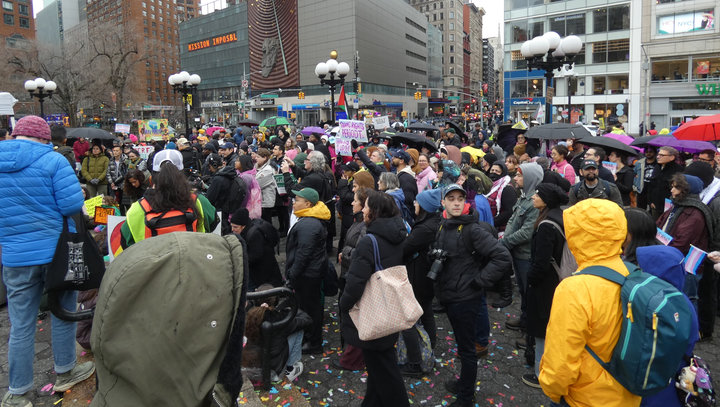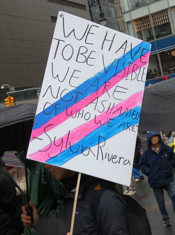 Jan. 10 — Under a cold, steady rain, hundreds of people rallied today in New York’s Union Square to defend the lives of transgender children and all trans people. Holding a sea of umbrellas, signs and flags, they chanted, “I believe in my power! I believe in your power! I believe in trans youth power!”